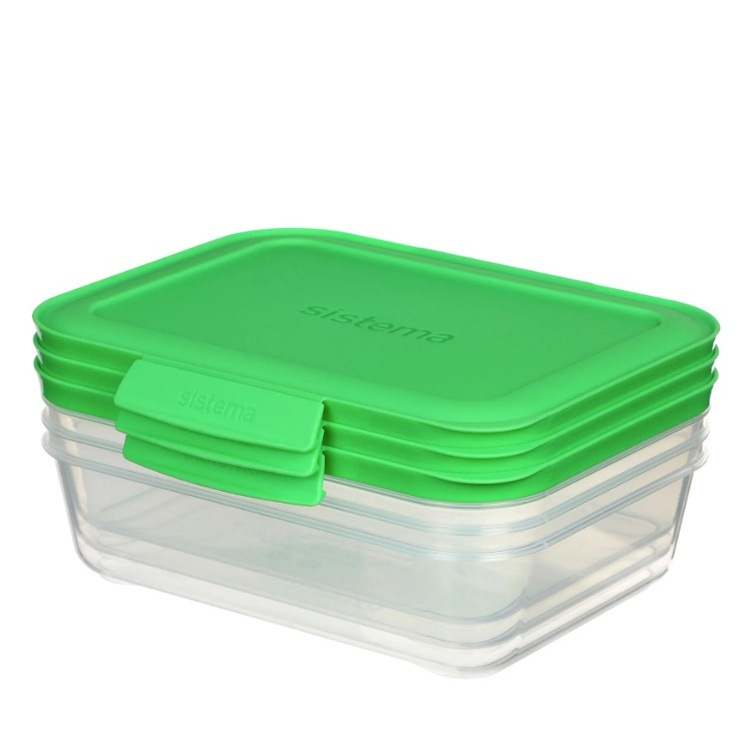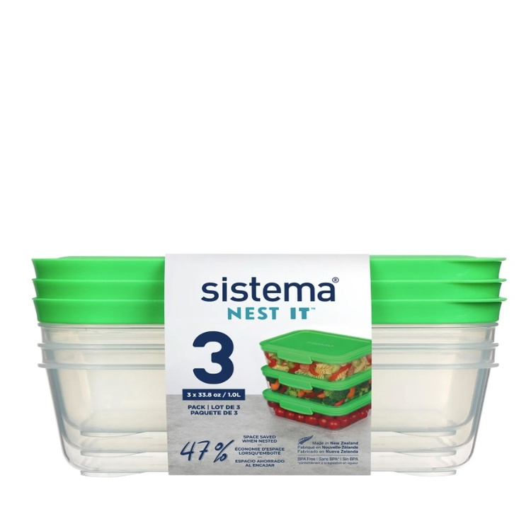 Food Storage boxes, 1L, Set of 3, SISTEMA NEST IT, Clear / Green