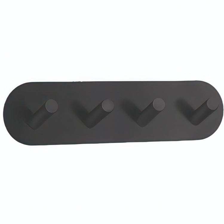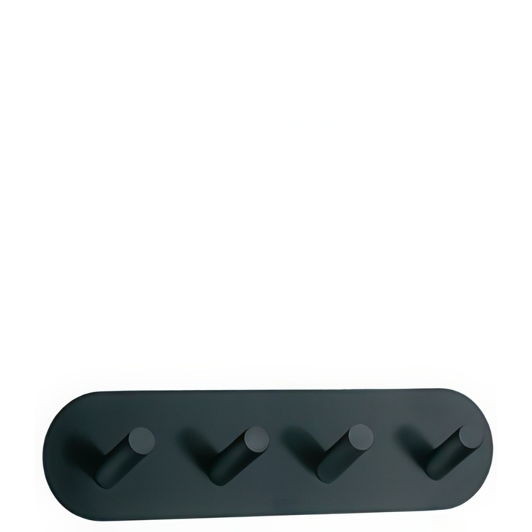 Self-adhesive four hook in black stainless steel. Simple and fast! Set up a hook and help keeping everything tidy and create order. With a good adhesive the hook needs no tools to be put up. -