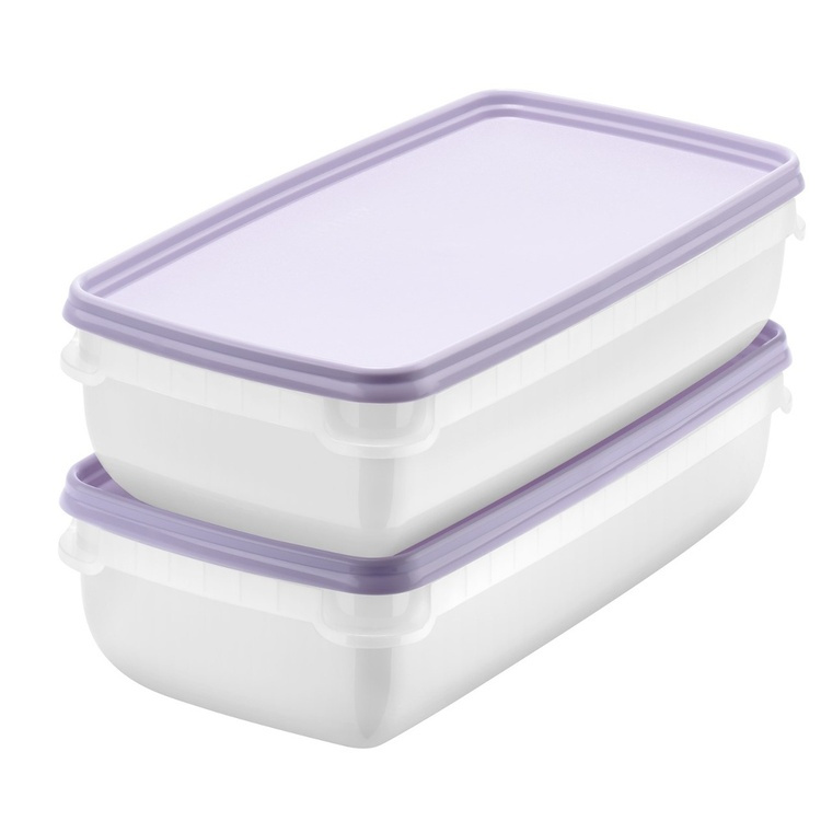 Freezer Boxes 1,2L, Stackable, Set of 2, SMARTSTORE FROST, White / Purple