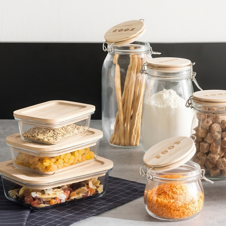 Glass lunch box with bamboo lid