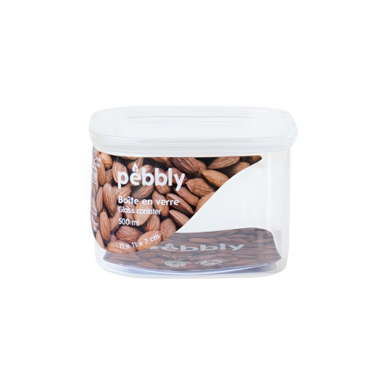 Glass Canister, 0,5 L, PEBBLY SQUARE CLEAR MINI, Clear