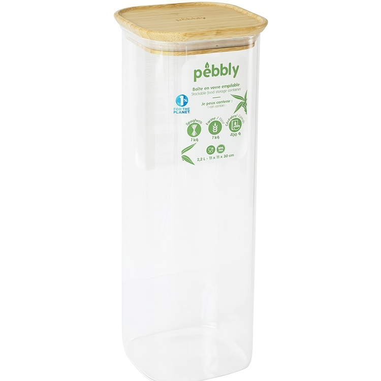 Glass Canister, 2,2 L, PEBBLY SQUARE LARGE, Clear / Bamboo