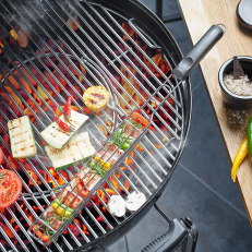 Thanks to the grill skewer basket's foldable design and long handle, it is easy to turn the entire contents in a single grip. You avoid both food sticking and pieces falling into the grill. This makes the basket particularly useful for smaller items that are otherwise difficult to handle, such as chicken pieces, mushrooms or sliced root vegetables.