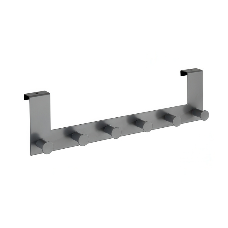 Hanger for door, CELANO, 2 cm, 6 hooks, Metal, Grey