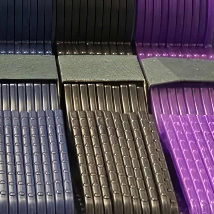 Each hanger features slight color variations reflecting the variety of plastics collected. -