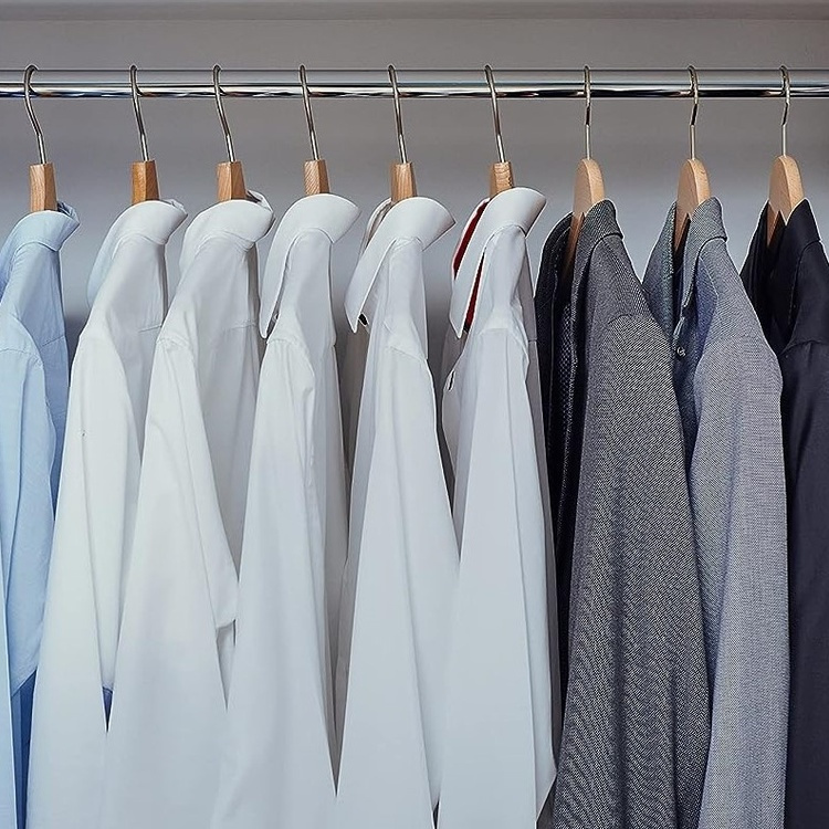 Organize your wardrobe with classic wooden hangers from MAWA.