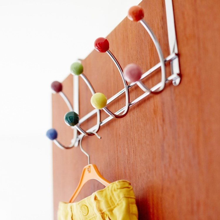 When the door is open, a hidden nook is created to hang clothes on. The hook hanger is hooked onto the door and does not need any screws.