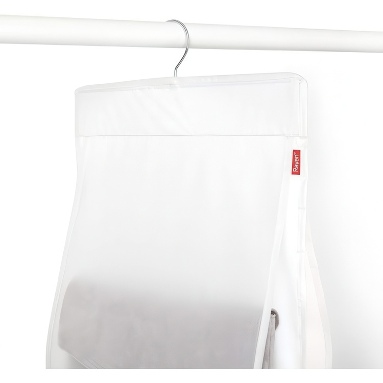 Hanging storage for bags, 8 compartments, MILKY WHITE, 33 x H 122 cm, Transparent