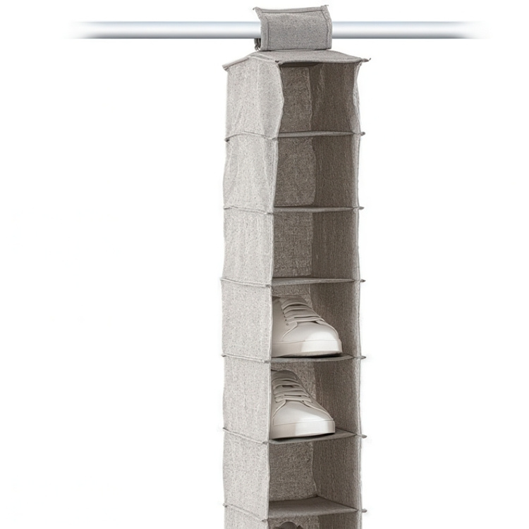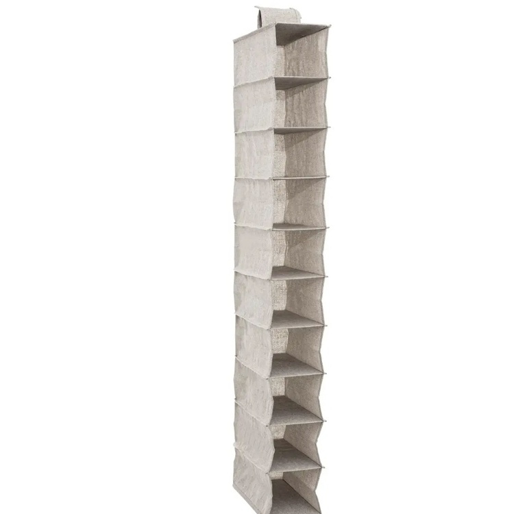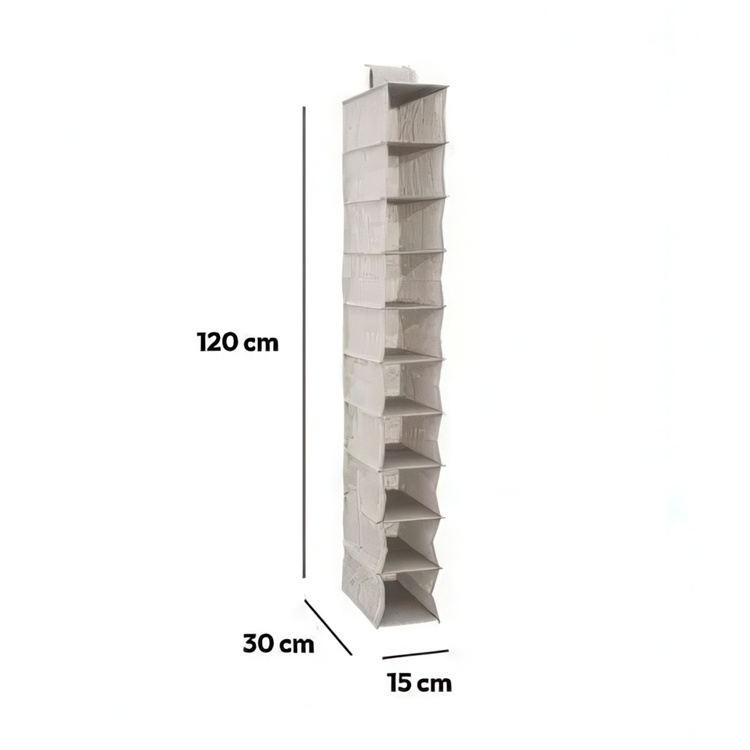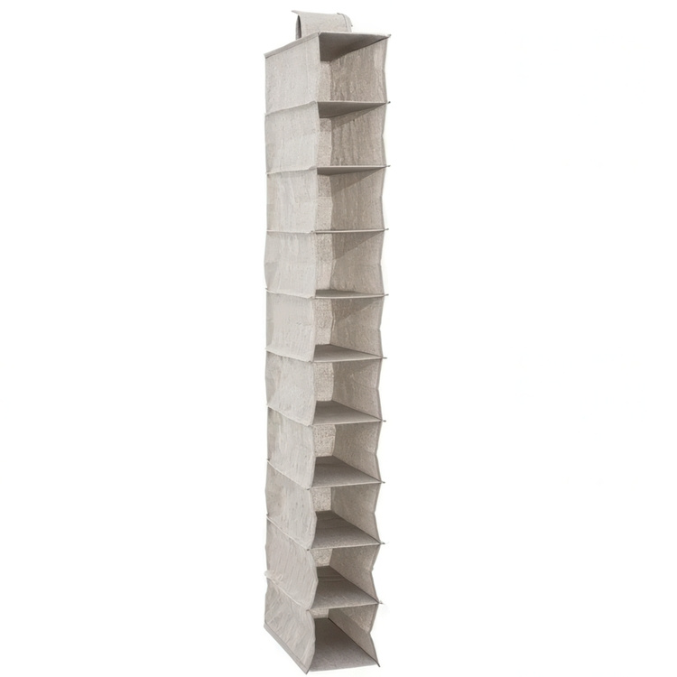 Hanging wardrobe, 10-section, ORGA SHOE ORGANISER, 15 x 30 x H 120 cm, Beige-grey