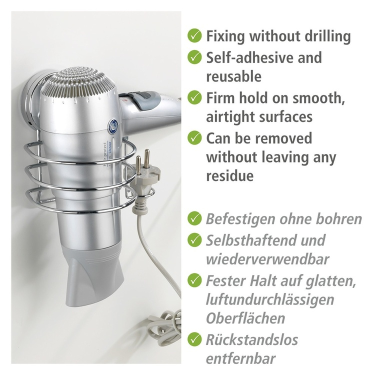 Holder for Hairdryer, Self-Adhesive, OSIMO STATIC-LOC, Silver