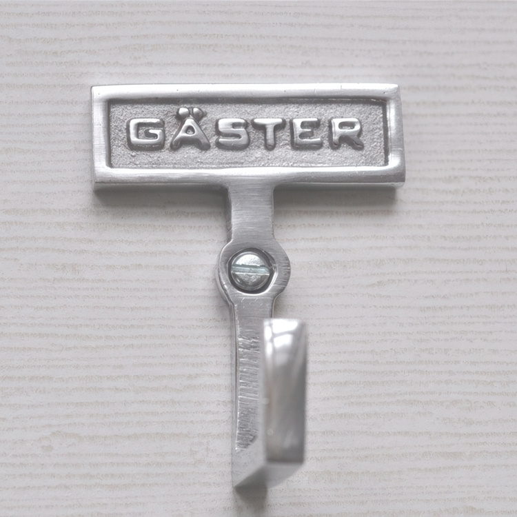 Hook with sign, GÄSTER, H 7 cm, Exmez, Aluminium