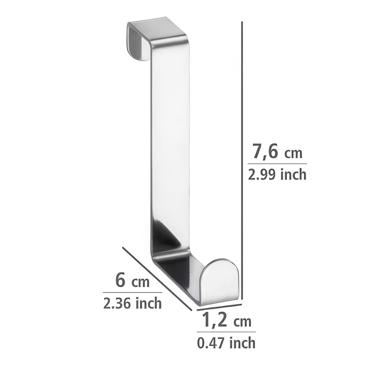 Six smart functional hooks in stainless steel that fit on the cabinet door, drawer and the door. Easy to hang over. Avoid ugly boreholes and the hook can be easily moved whenever you want.