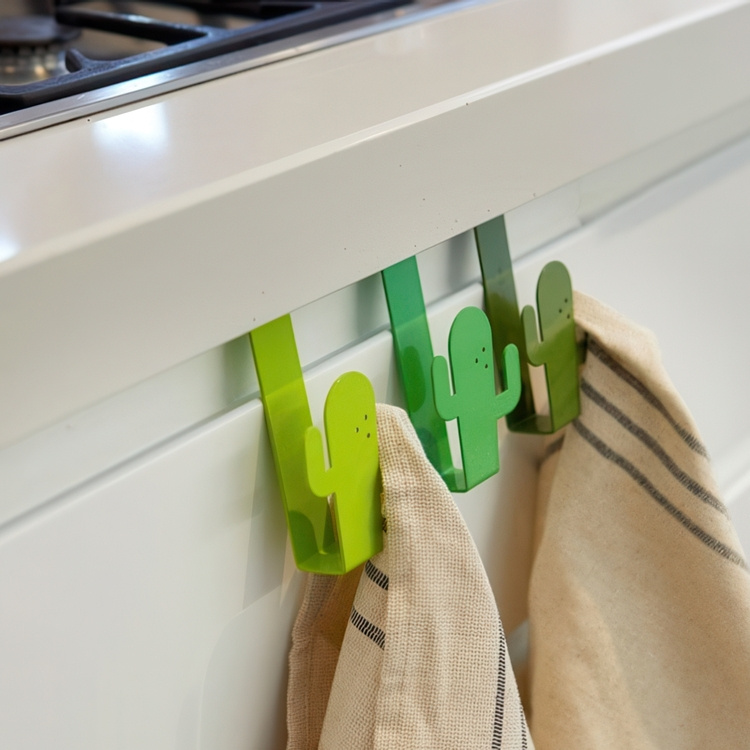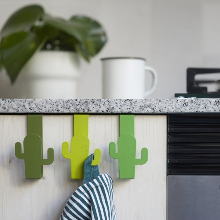 Hooks for cabinet doors, Set of 3, CACTUS, 5,5 x 4 x H 9 cm, Green