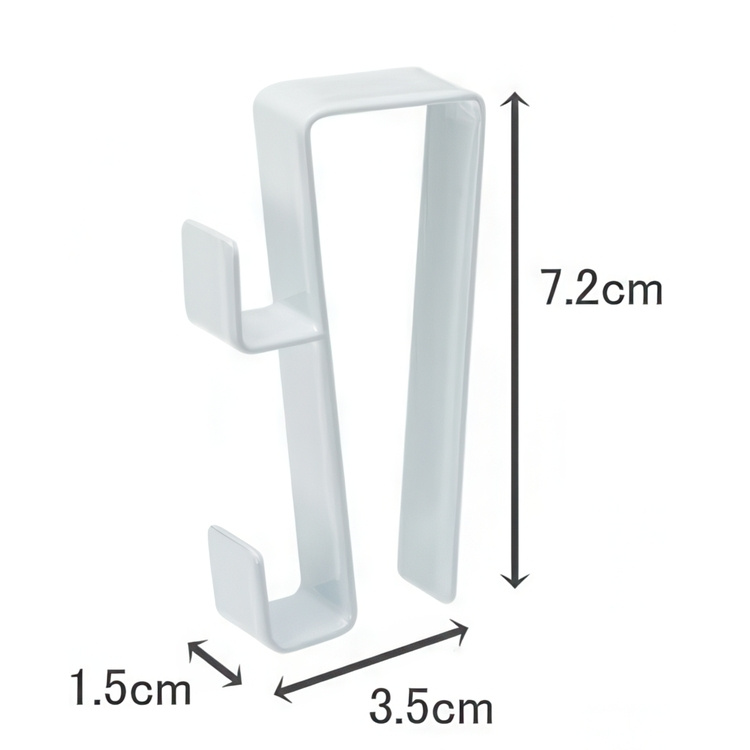 Set of two 2-stepcabinet door hooks fromJapanese Yamazaki. Hang things easily over the cabinet door. Avoid ugly holes and be able to easily move the hook at any time. Choose whether to hang the hook visibly on the outside or hidden on the inside of the door.