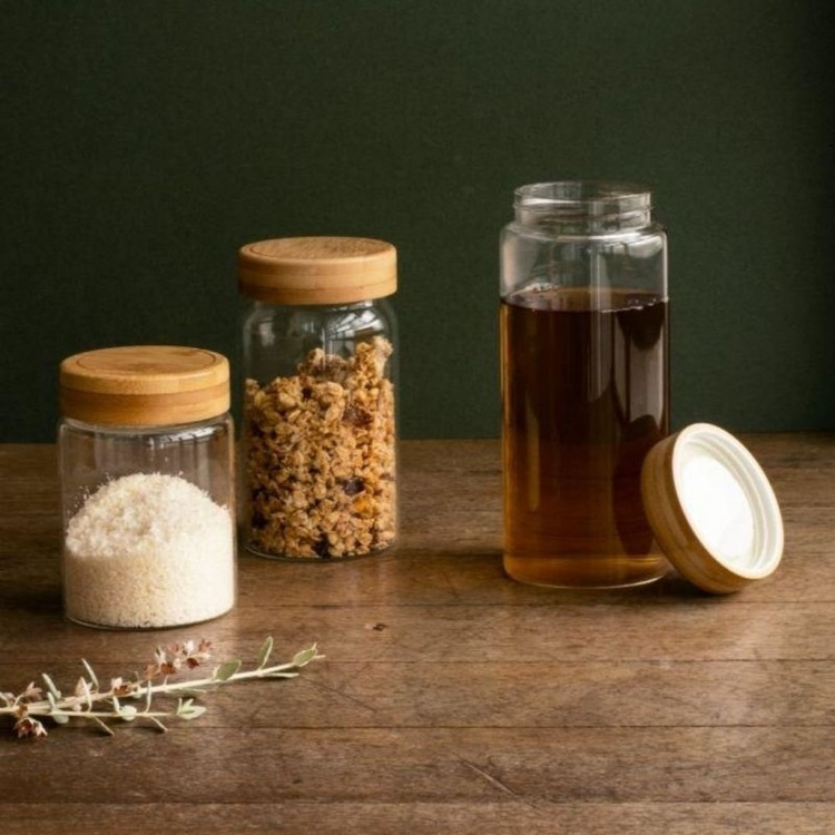 Glass jar with bamboo lid