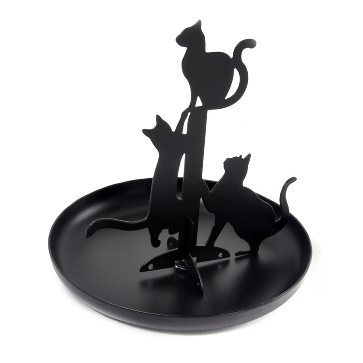 Jewelry tree with tray, BLACK CATS, Kikkerland, Black