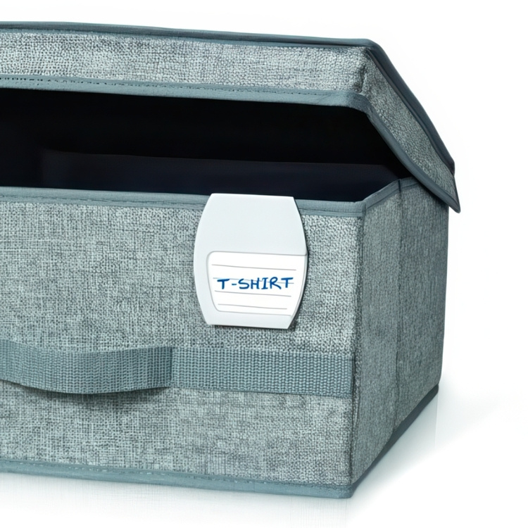 Labels for baskets and boxes, 4 pieces, BIN CLIPS, 7 x 8 cm, White