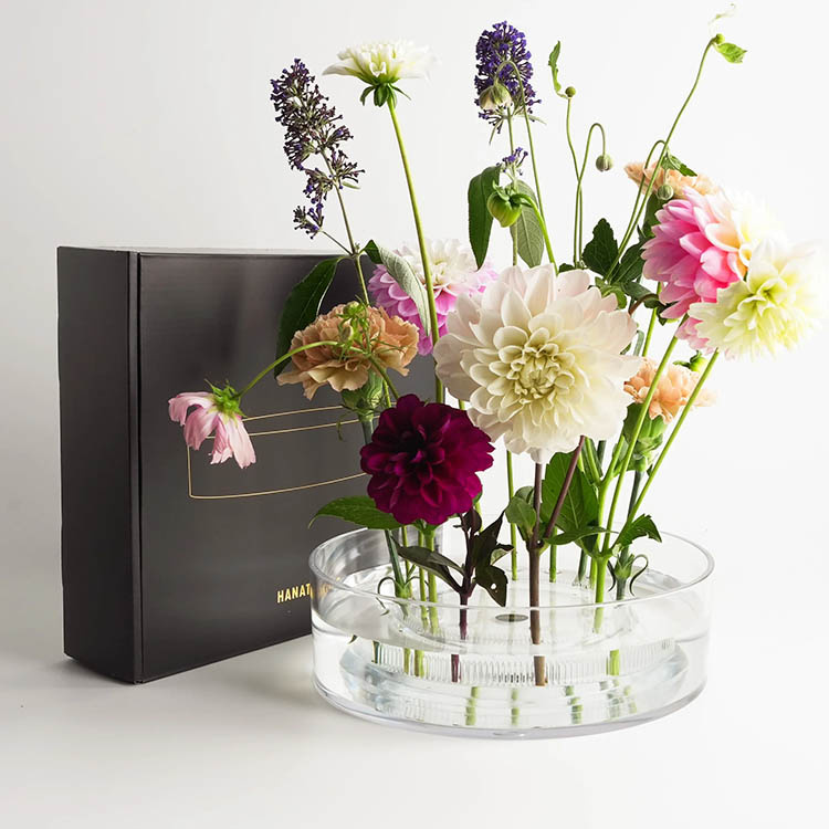 Cylinder-shaped vase in acrylic from Hanataba combines the aesthetics of glass with the durability of acrylic. The sleek, low design in crystal-clear acrylic is designed to highlight each flower in a natural way. With robust quality and stable form, it is fully compatible with Hanataba's flower spikes and creates a reliable base for creative flower arrangements. NOTE! flower spikes are not included.