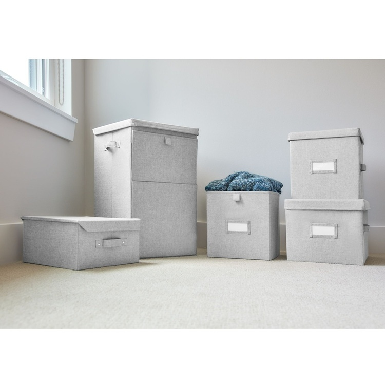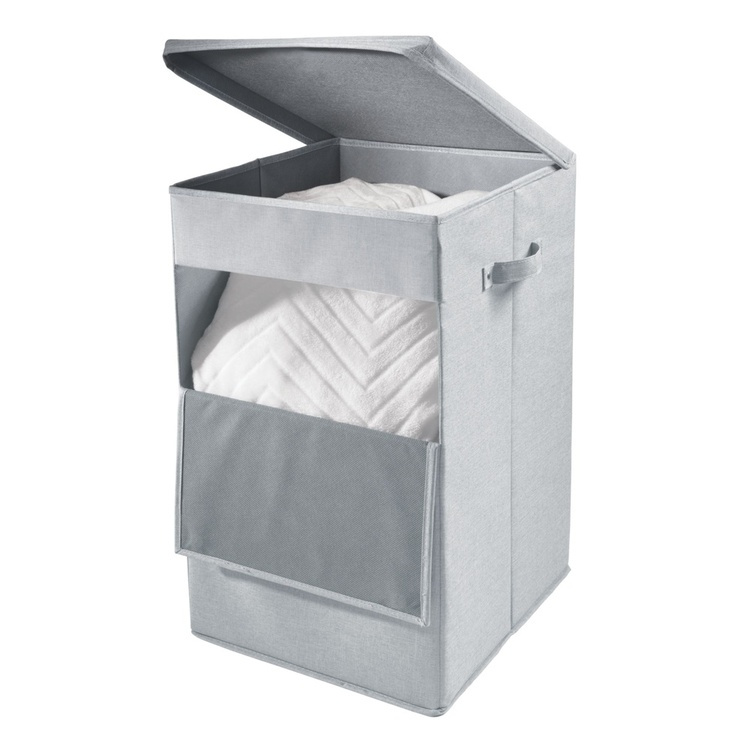 A smart laundry basket from Inter Design USA. Use the lid or lower opening to get rid of your dirty clothes. Two handles to easily move the basket.