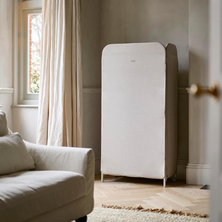- Stylish fabric on the outside keeps the laundry out of sight during drying.