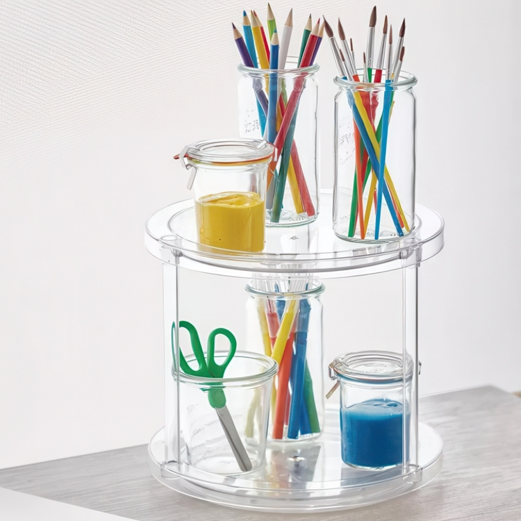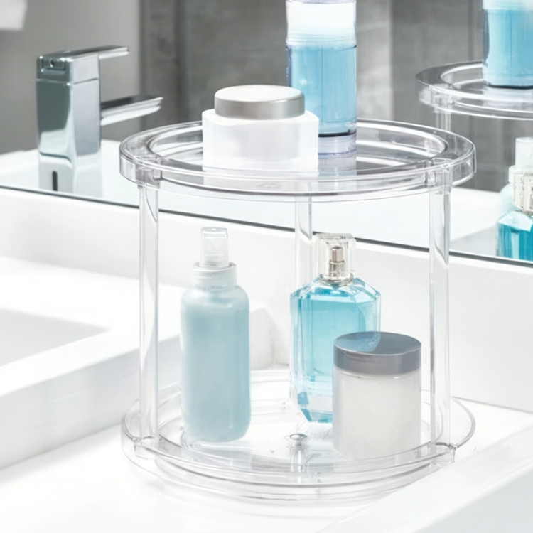The Home Edits 2 tier turntable is the secret to effortless organisation in your bathroom or kitchen. -