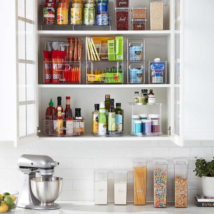 The Home Edit turntable can be used for your pantry, fridge or bathroom cabinet. Ideal for smaller spaces.