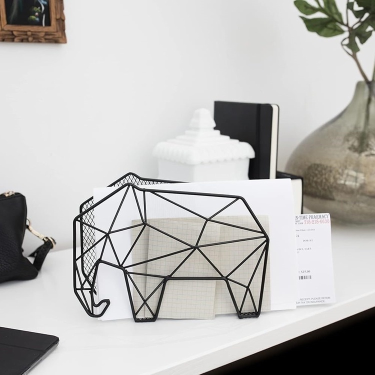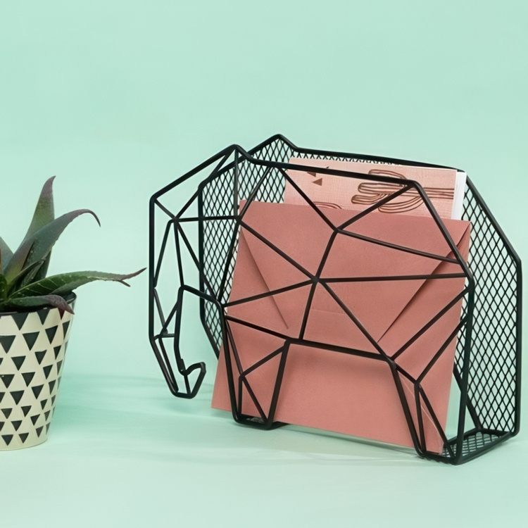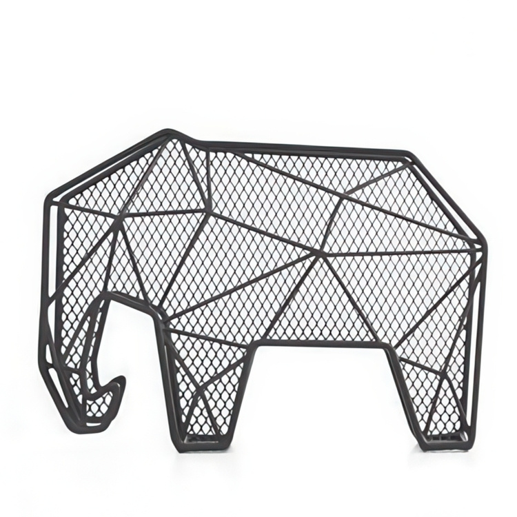 A solid steel wire organizer in the shape of a elephant.