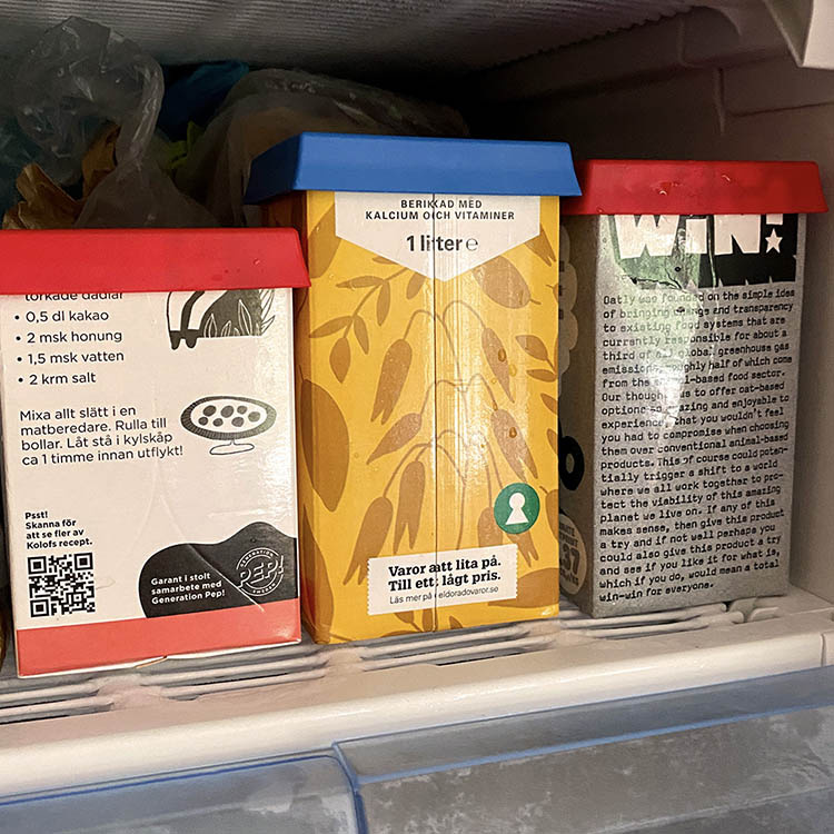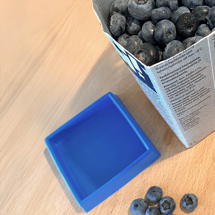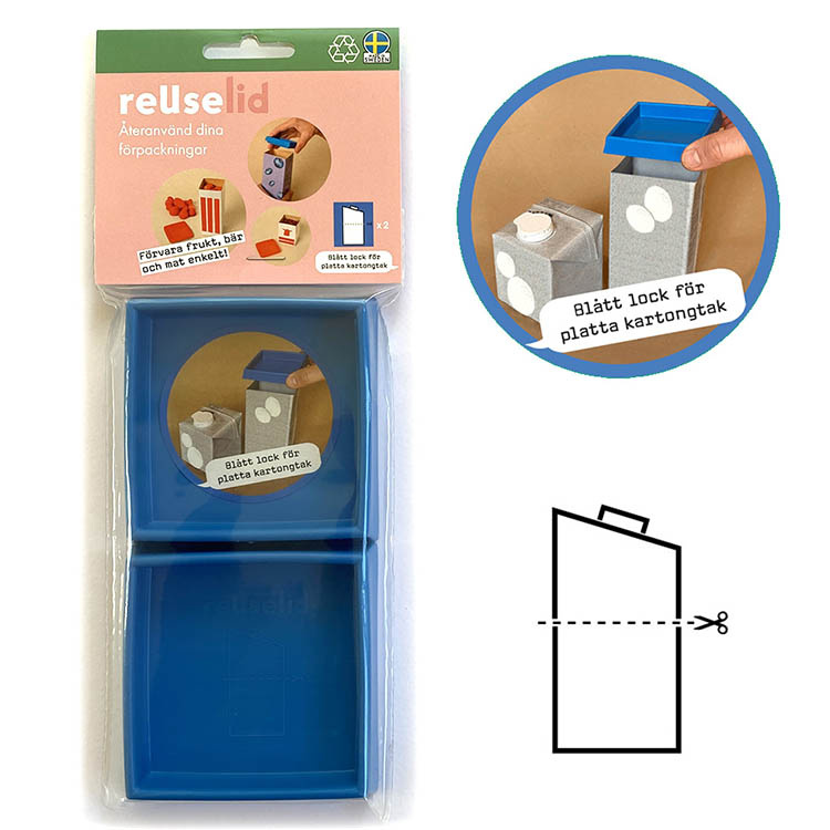 Transform your empty milk or juice carton into a smart food container with reUselid. Rinse the carton when the contents are finished, cut it to size, and click on reUselid – you get a tight-sealing storage container. The lid is dishwasher safe and fits one-liter packages for example milk, juice, and oat drink.
