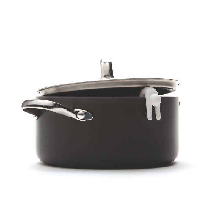 Fun and handy lid holder that hangs over the edge of a pot or pan so that the steam can escape. The lid holder is helpful when cooking pasta or other foods that usually have an easy time spilling over while boiling. "Sid" is sold in 2-packs, one red and one white. This lid holder is the perfect present for the home chef, and will bring a smile to their face!