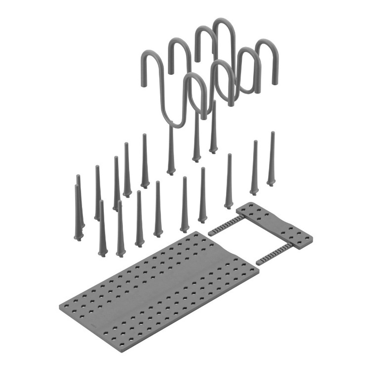 The pegs are placed to suit your needs. Comes with 18 pegs and 4 extension pegs so you can customize the rack to accommodate cookware of all sizes. -