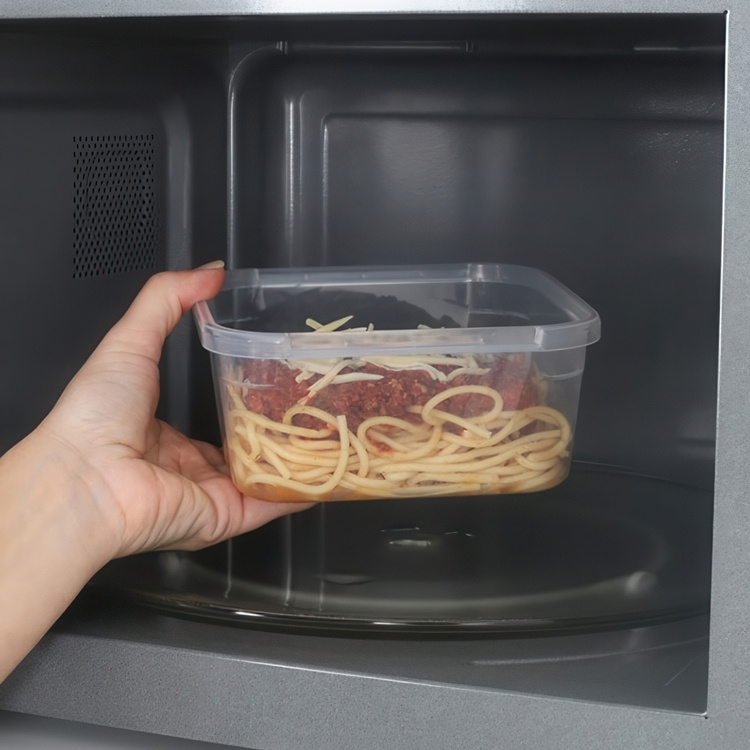 Practical plastic lunch box to store a smaller salad or maybe some tomatoes.
