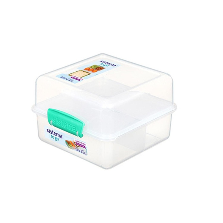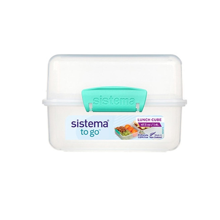 Lunch box divided into compartments, 1,4 L, LUNCH CUBE TO GO, Transparent / Teal