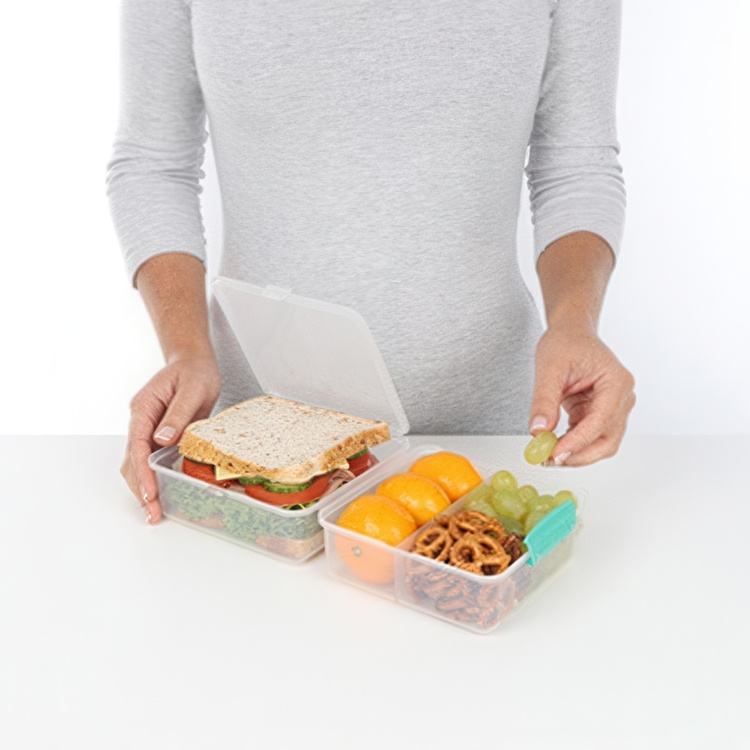 Practical plastic box to store lunch in, becomes easy to bring to school, work etc.