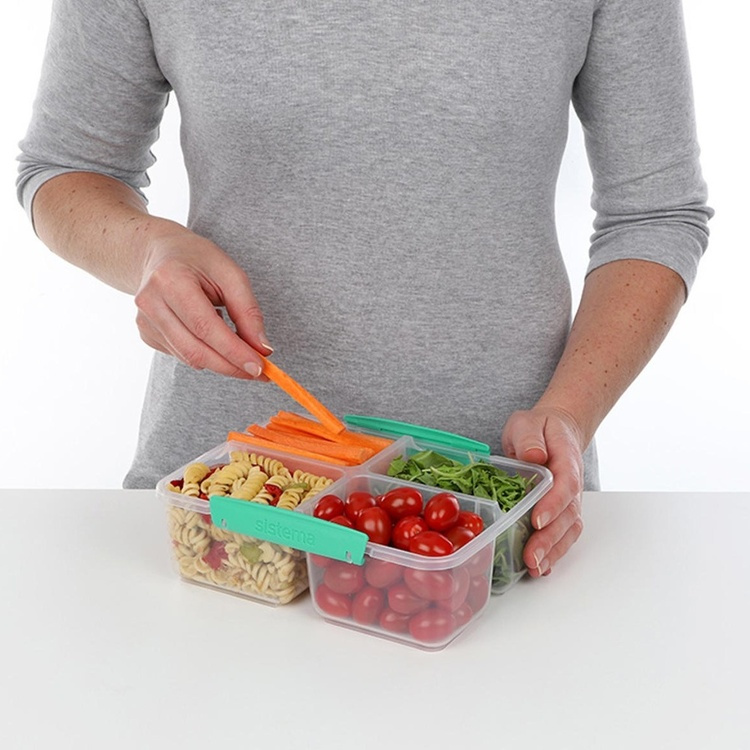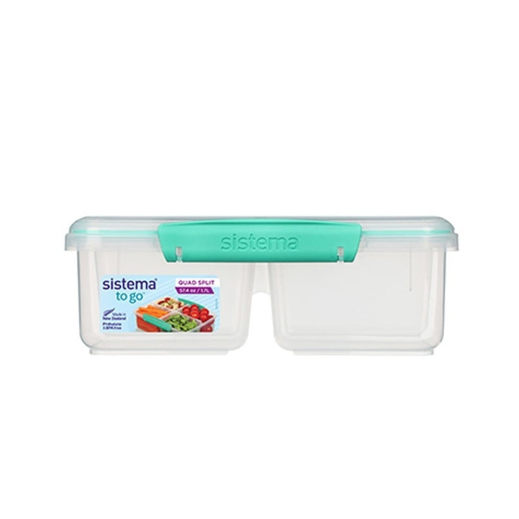 Lunch box, Four parts, 1,74 L, QUAD SPLIT TO GO, Clear / Teal