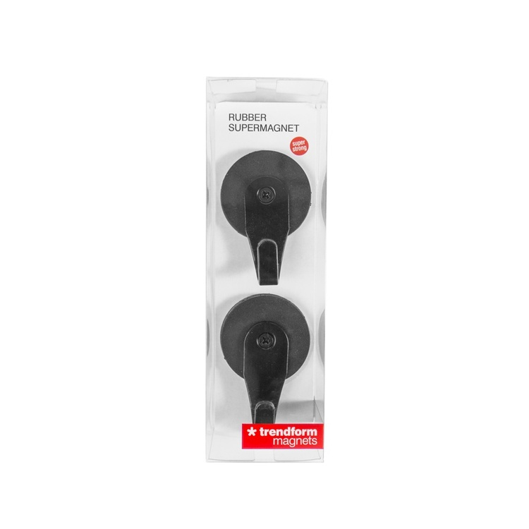 Magnetic hooks, super strong, set of 2, RUBBER SUPERMAGNET, Ø 4,3 cm, Black