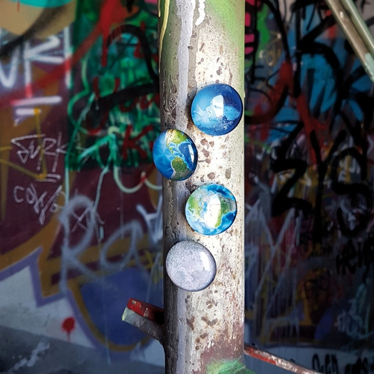 Magnets, glass, Set of 4, PLANET, Ø 3,5 cm, Blue