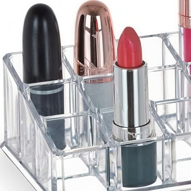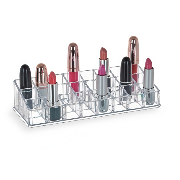Get a good overview of your make-up in clear acrylic set. This handy organizer has 24 compartments perfect for lipstick. -