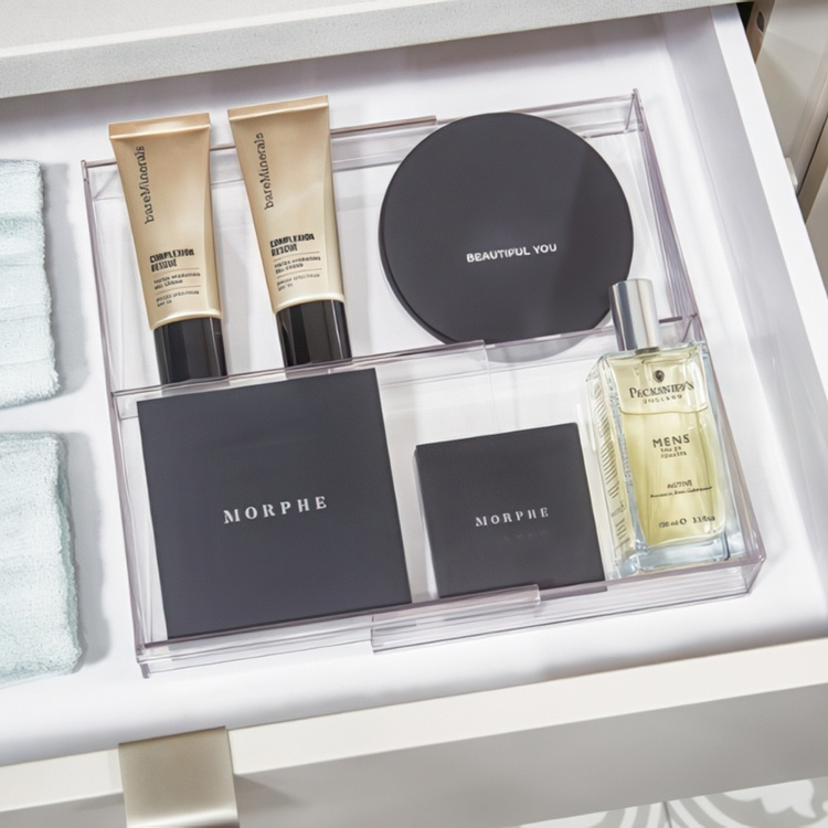 Maximise bathroom drawer space and keep all your makeup essentials within view .