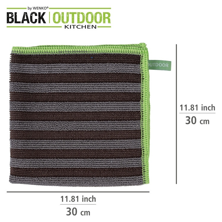 Microfiber cloths for coarse dirt, Set of 2, OUTDOOR, 30 x 30 cm, Black