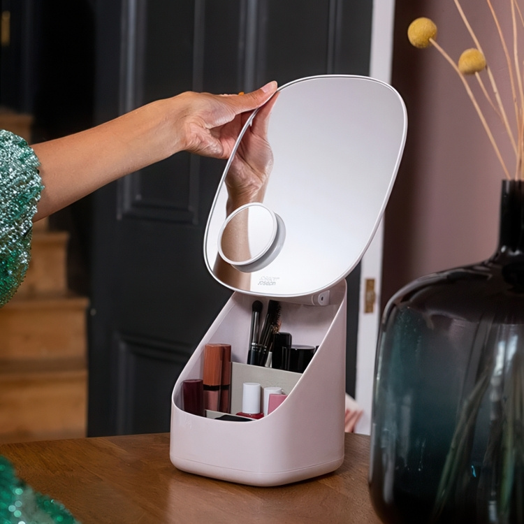 Mirror with Organizer, VIVA PEDESTAL COSMETIC ORGANISER, Joseph Joseph, Shell