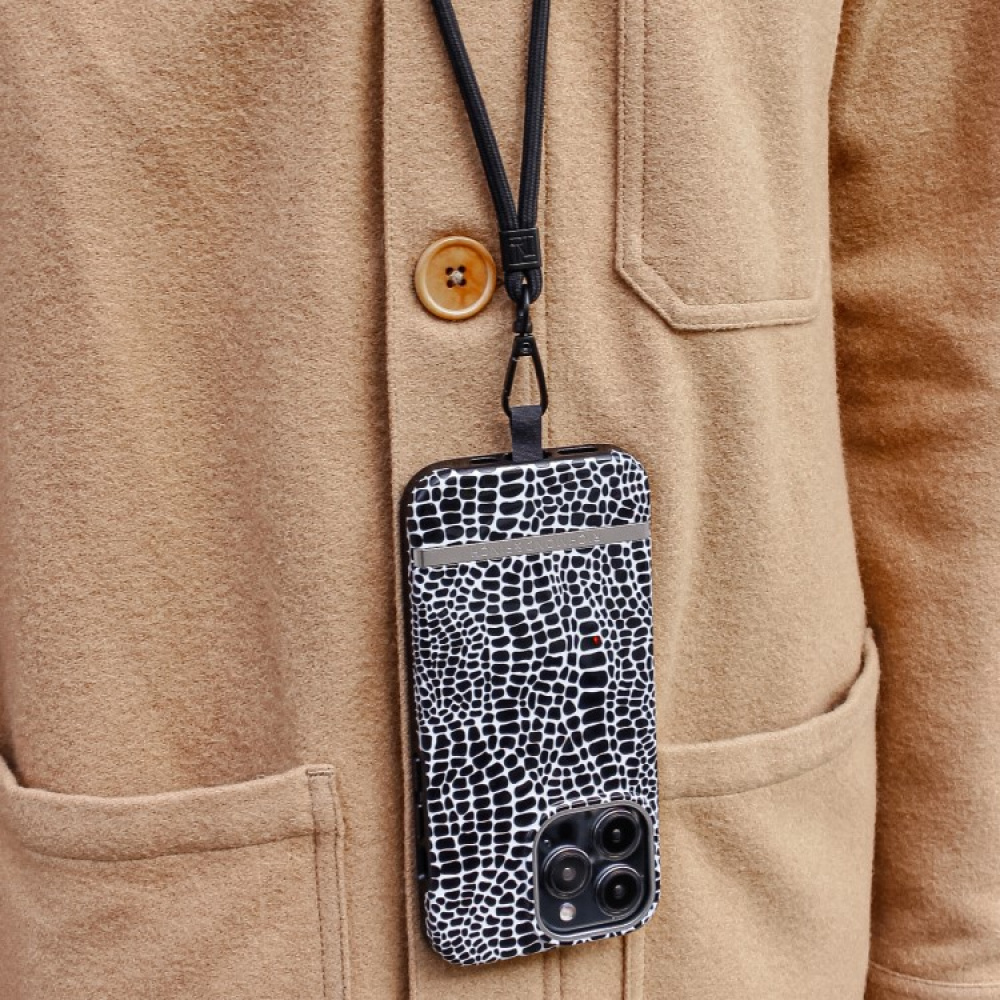 With the Richmond Finch mobile band, you don't need to buy a new phone case with a cord, but can easily complement your existing case with a cord that fits any phone with a case. The mobile phone strap allows you to carry your mobile phone with a case neatly and securely around your neck or slung over your shoulder. The mobile phone strap is a stylish accessory for your mobile phone and is smart to use when you have your phone with you but don't have access to pockets or a bag.