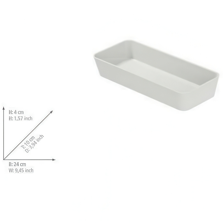 Oblong storage tray / drawer insert, GOM, 24 x 10 x H 4 cm, White