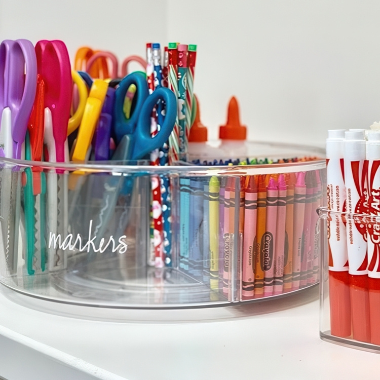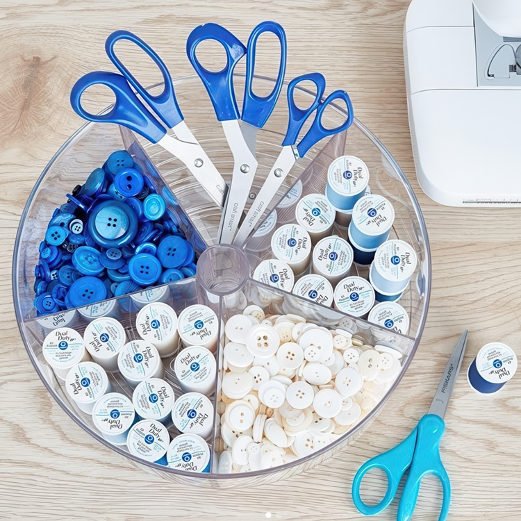 Organiser with 5 sections, RPET TURNTABLE, Ø 29,2 x H11,4 cm, Transparent