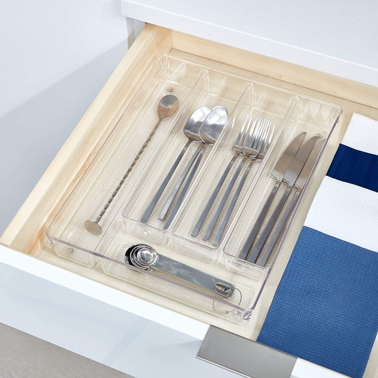 Five separate cutlery compartments allow clear separate sorting of knives, forks, spoons, teaspoons, kitchen knives or pens & paper clips.