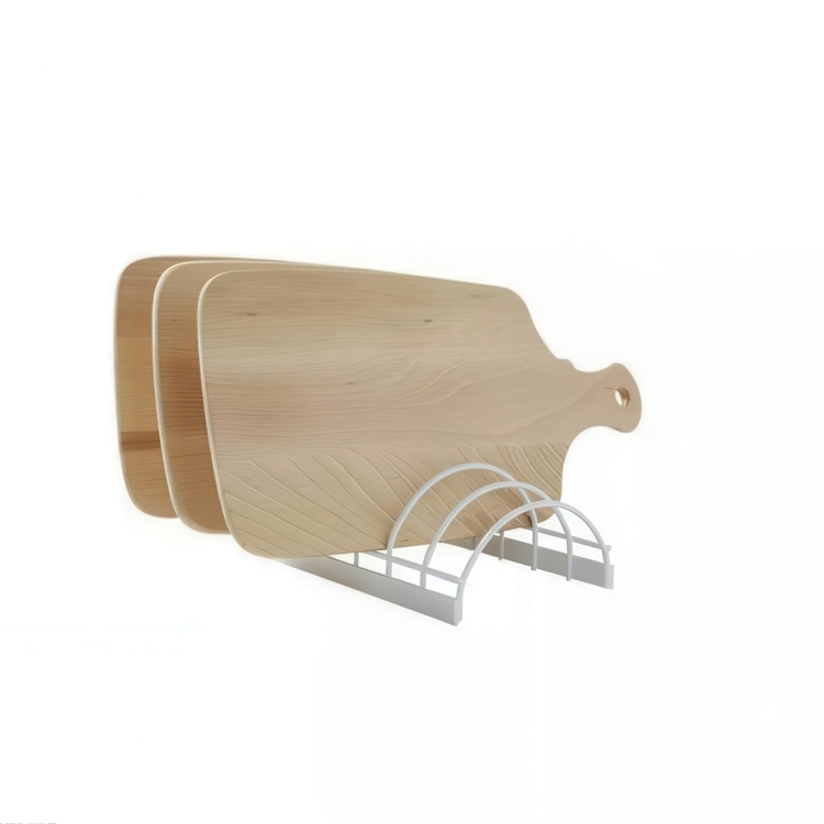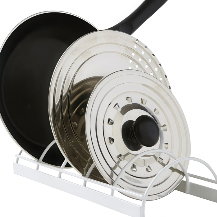 Cookware Organizer neatly stores or dries pans, lids, cutting boards, and more.