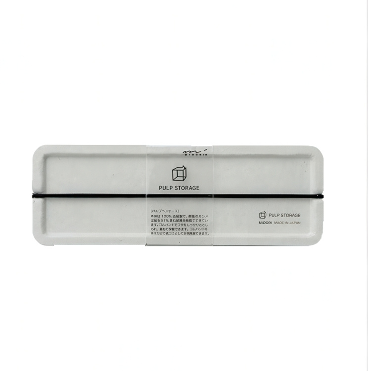 Pen Case PULP from Japan made of 100% waste paper, The lid can be tightly closed using the rubber band, allowing the cases to be stacked for storage. -