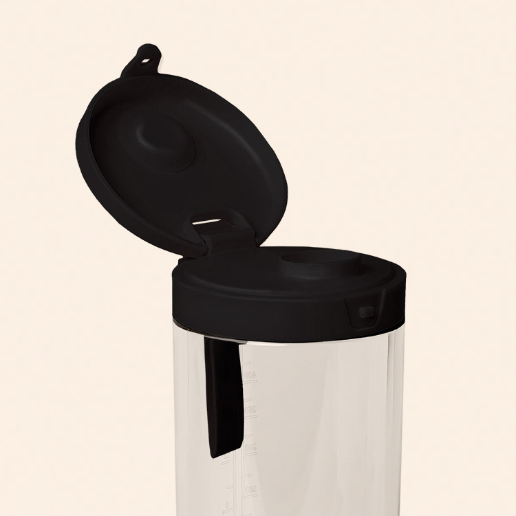 To make the blender even more practical in everyday life, you can add a bottom cover and an insulating bowl. The bottom lid allows you to take the container with you without the motor unit – perfect when you want to prepare drinks in advance. The case keeps the contents cold for longer and protects the blender during transport.