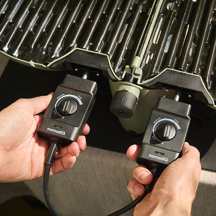 The NomadiQ E-BBQ is a compact and portable electric grill that makes it easy to cook delicious food wherever you are. With two separate grilling surfaces and individual temperature control, you can cook different dishes at the same time in a convenient way. The electric grill also starts up in just one minute, making it particularly suitable for balconies, outings and other places where you want to start grilling quickly and easily.