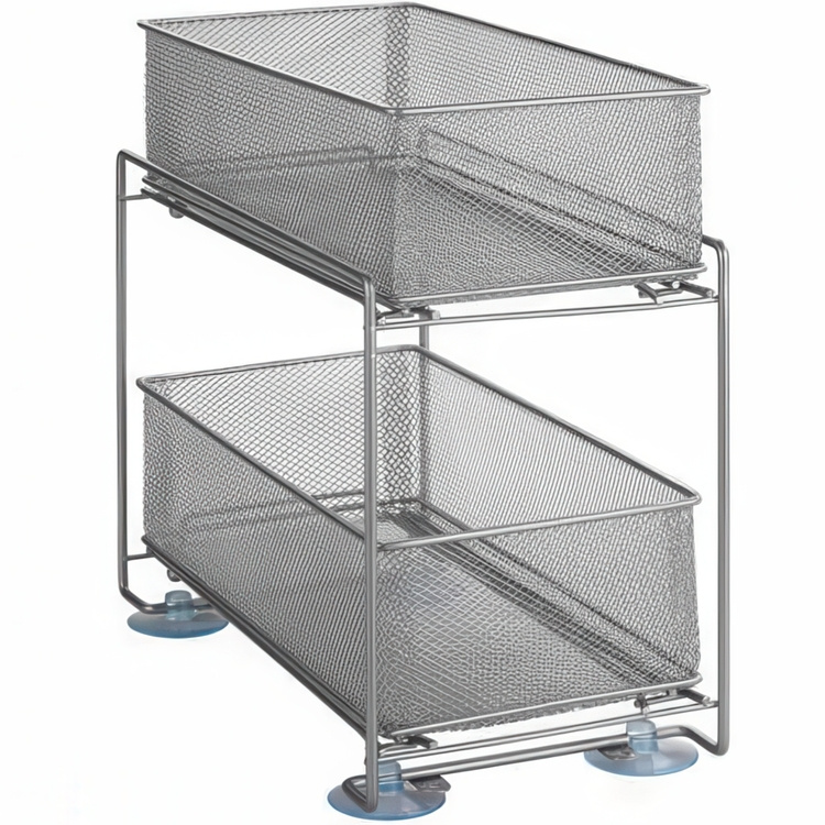 Pull-out drawer baskets that provide more storage space and order under the sink. In the baskets there is room for eg. dishwashing detergent, various cleaning agents, towels and accessories. Easy installation. Two removable storage baskets. -
