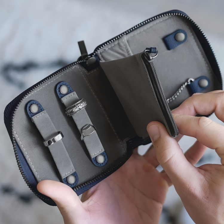 With storage for your rings and 2 necklaces or chains, plus a handy pouch- great to store cufflins or a tie pin for a special event.